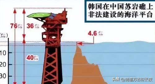 见浮标的事情没有引起太大的反应,韩国人又得寸进尺,于2001年先是把苏岩礁的名字改为了“离於岛”,然后又在苏岩礁上建了个非法的重达3600吨的大型海洋平台。