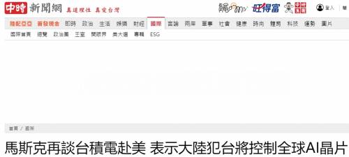 可这次在参加一档访谈节目时,马斯克聊着聊着,扯到了中美人工智能竞争,声称一旦中国大陆“武力统一台湾”,美国就存在拿不到最先进AI芯片,进而输掉竞争的风险,为了保障美国的技术安全,必须把先进AI芯片的产线,从台湾地区转移到美国。