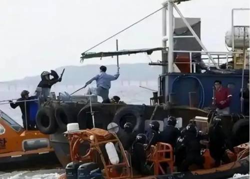 韩国媒体还在报道当中煞有介事地声称,中国的海警执法人员在现场“疑似持有刀具”,进一步烘托了这场对峙的微妙氛围。