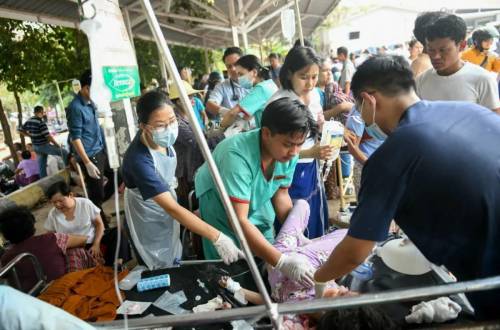 有外媒表示,缅甸军政府对于此次强震的处置工作“一片混乱”,没有在第一时间发表任何官方消息,也没有统一的抢险救灾机制。除了曼德勒之外,缅甸第一大城市仰光、首都内比都也都遭到地震的波及,大量房屋倒塌,大批平民纷纷逃离家园。据法新社消息,内比都的医院到处都是伤员,“出现了大量的人员伤亡”,军政府领导人敏昂莱亲自来到现场慰问,并承诺将全力救灾。