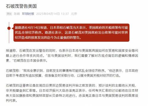 美日就关税问题开展谈判前夕,面对咄咄逼人的特朗普,日本首相石破茂终于不再隐忍,发出了上台以后措辞最为强烈的警告,称美国的对等关税,将会扰乱全球经济秩序,日本要及时行动,防止关税政策对国家经济造成打击。