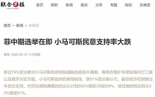 另一方面,根据菲律宾民调机构“亚洲脉动”的最新民调数据,马科斯的支持率一落千丈,仅有25%的受访者对他的施政感到满意,暴跌17个百分点,有高达53%受访者对他不满意,相反莎拉的满意度和信任度均大幅飙升,分别为59%和61%。