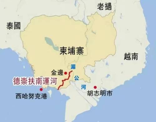 据悉,近期中柬两国签署了37项双边合作协议,涵盖政治、经济等众多领域,德崇扶南运河就是其中关键的合作项目。据介绍,这条运河贯通湄公河和泰国湾。长度约为174公里,河道宽度为100米,水深为5.4米,可通行3000吨船只,运河横穿柬埔寨4个省份,沿途计划建设11座桥梁和3座船闸水坝,将连接柬埔寨内陆和该国唯一的深水港西哈努克港,预计总投资为17亿美元。