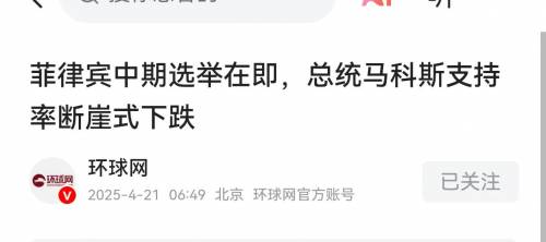根据我国环球网4月21号当天早上发布的消息可以得知,目前菲律宾总统小马科斯在菲律宾国内的支持率呈现出断崖下跌的趋势。也就是说,这位菲律宾总统现在摊上事了。