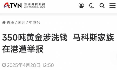 中国香港果断出手,立案调查小马科斯家族,涉及千亿美元以及350吨黄金。