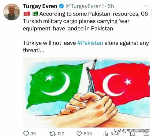 很多人不知道,土耳其与巴基斯坦的国家关系,很多方面不亚于中巴关系。在巴基斯坦的海空军现役装备领域中,除了中国和美国制造的以外,还有大批土耳其制造的武器装备。比如轻型护卫舰、攻击无人机和武装直升机等等。而且,两国还在未来先进武器装备技术研发领域保持密切合作。比如,巴基斯坦空军加入并投资了土耳其的第五代战斗机研发计划。这也是土耳其危急时刻出手相助的感情基础。