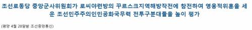他还称赞朝鲜军队的战斗力:“朝鲜人民军的官兵们在战斗中与俄罗斯军人并肩作战,表现出了高度的专业素养,在战斗中展现了坚韧不拔的意志和英雄气概。”