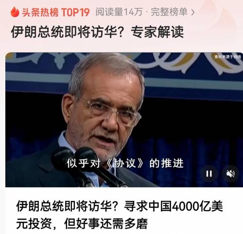 现在的问题,是伊朗怎么办?美国已经明确称袭击未参与对伊朗核设施的打击。也有伊朗总统要访华的消息。但恰恰是伊朗这位总统上任后不断软弱,才导致以色列的嚣张。