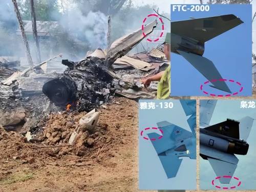 可笑的是真相根本不需要复杂的调查,不到24小时,几张现场残骸的照片就让这场狂欢变成了一出国际笑话,被干掉的,根本不是什么“枭龙”,而是另一款中国货FTC-2000G。