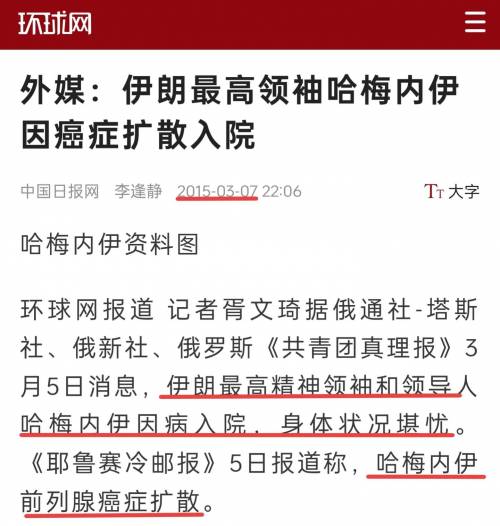 哈梅内伊作为伊朗的最高领袖,拥有至高无上的权力,统管政治、司法、军事。而如今已经耄耋之年的他在2015年就被传患癌并扩散。
