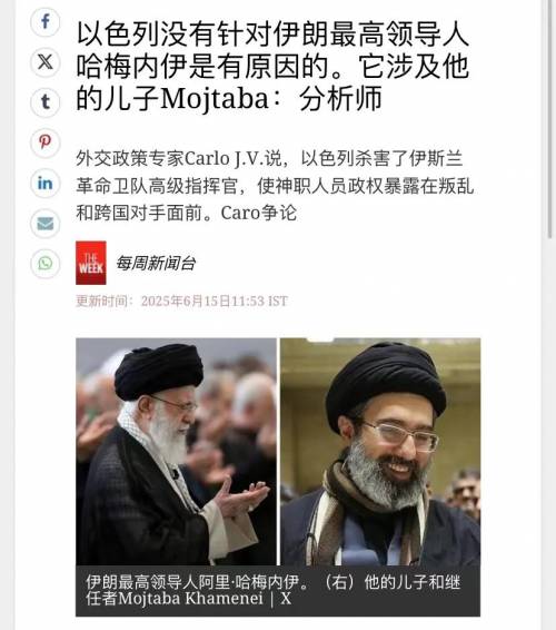 一旦哈梅内伊殉道,他的儿子莫伊塔巴很可能就会被神圣化,这样会促使他比别人获得更多的合法性,形成伊朗内部新的凝聚力,继续传承哈梅内伊的强硬理念,对以色列并不十分有利。
