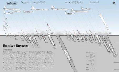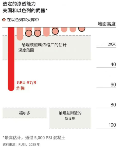 首先,GBU-57钻地炸弹的性能究竟如何?这其实是要打个问号的。早在这种武器的性能被披露的初期,就有报告分析认为60米的深度过于“夸张”,质疑这一数据的准确性。