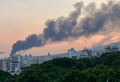 6月16日,以色列空袭后,伊朗国营电视台大楼升起浓烟。 华盛顿邮报