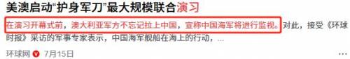 在演习开幕之前,澳大利亚也不忘拉上中国,澳方宣称中国海军可能将对此次演习进行监视。