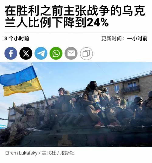 第一,民调显示,乌克兰所有阶层,无论地区或年龄段,他们对继续打下去的支持率都在稳步下降。