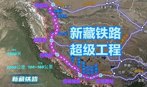新藏铁路包括日和铁路和拉日铁路,北起新疆和田市,南至西藏日喀则市及拉萨市。这条雄心勃勃的铁路旨在到2035年建立一个以拉萨为中心的5000公里综合铁路框架。从国内意义而言,这凸显了我们在基础设施稀少的西部地区发展经济的重大意义。