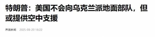 不过,8 月19日特朗普接受福克斯新闻采访时又回归此前立场,表示美国会帮助乌克兰防卫,愿意提供 “空中支援”,但保证不会向乌克兰派遣地面部队。