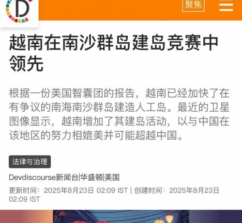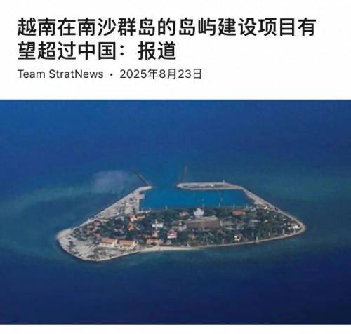 根据美国智库的分析,截至2025年3月,越南在南沙群岛一些岛礁创造的人工土地面积,大约是中国在南海岛礁的70%。