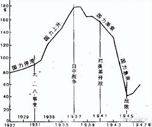 对比来看,日本在中国战场,与国民党正规军打了8年,抗战初期国民党约为170万现役兵,到日本投降,国民党正规军在日本投降时达到430万人,是中国共产党军队(约120万人)的近4倍。也就是说,日本跟国民党打了8年,国民党越打越强,军队规模越打越多。