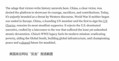 美媒指出,第二次世界大战既非始于欧洲,亦非终于欧洲。反法西斯战争是始于中国,中国是战胜法西斯主义的核心力量。而北京的纪念活动是对西方垄断二战记忆的有力反驳。