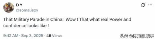 有网友在X平台发帖称,“中国的阅兵式!哇!这才是真正的力量与自信!”