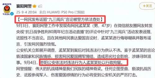 9月3日,湖北襄阳一些人的朋友圈中,赫然看到47岁的网民孟某某对阅兵发表诬蔑、诋毁性不当言论,他不仅针对九三阅兵活动进行诋毁,还在其他网民表达爱国言论时进行侮辱嘲讽并散布谣言,试图颠倒黑白。