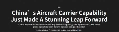 “动力”网站“战区”频道评价称,在中国海军的最新测试中,不但福建舰航母完全是中国自行研制的,而且其舰载航空联队最重要的型号——歼-35隐形战斗机和空警-600预警机也同样如此,“中国海军同时引入一种新的航母设计和至少两种新的舰载机设计,无论以何种标准衡量,这都令人印象深刻”。