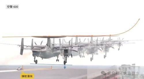 比较一下空警-600和E-2C的弹射起飞,两者的升空轨迹有所不同。