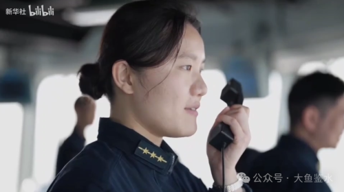 > 对比去年5月海试时海上狂飙状态的舰艏浪