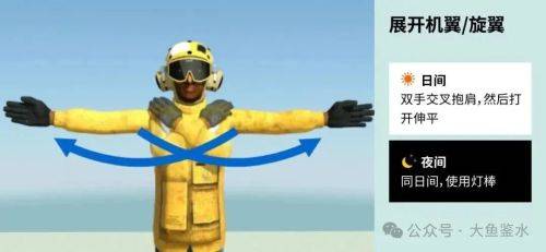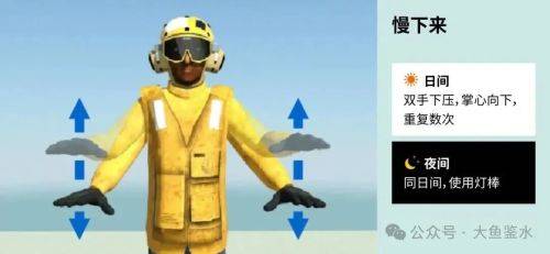 > 美国航母飞机引导员的动作类似但是站姿用双手