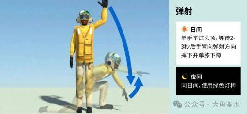 > 美式弹射指令包含站立举手和下蹲点地再前伸2个部分,而且后面一个动作允许自由发挥。