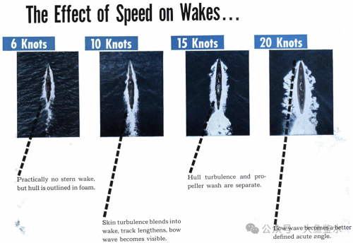> 不是海员,对艏艉浪和航速的关系不是很清楚,正好找到一份二战时期的潜艇识别手册