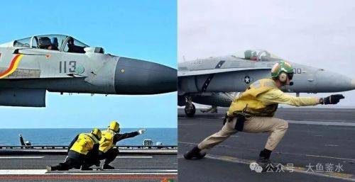> 美国航母飞机引导员动作相同