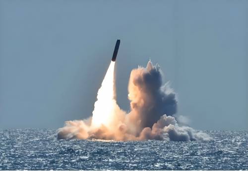 在加勒比海一艘潜伏在水下的俄亥俄级战略核潜艇,连续发射了四枚三叉戟Ⅱ型洲际导弹。