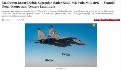 据《防务亚洲》10月10日报道,黑客组织泄露了一份俄罗斯国家技术集团公司(Rostec)的内部文件,揭露其为印度海军提供的米格-29K舰载机存在严重的系统性缺陷。