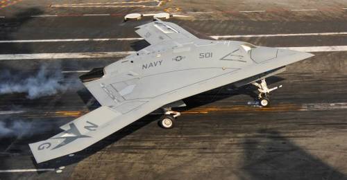 美军X-47B舰载无人攻击机莫名其妙地下马了