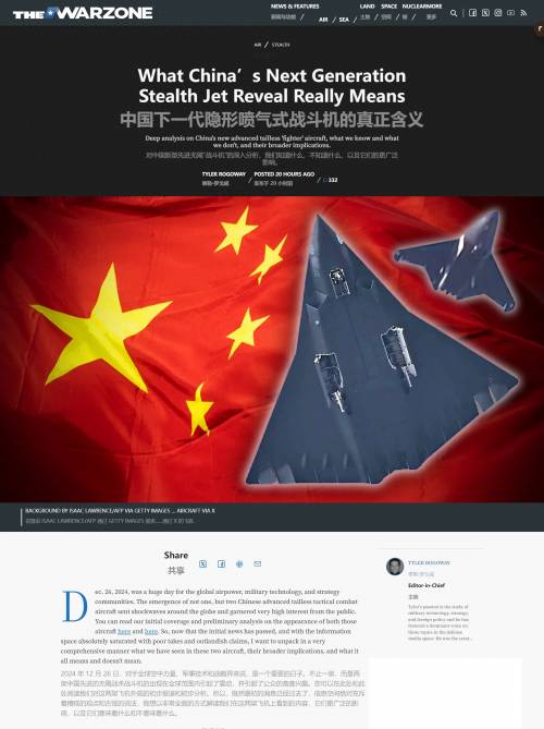 美媒TWZ再次深度分析中国六代机,对成飞的歼-36和沈飞的歼-50进行了前所未有的大篇幅分析,得出的结论是中国已经向全世界展示了全新的空战理念与新一代战斗机,开始走上与西方战斗机完全不同的一条道路!
