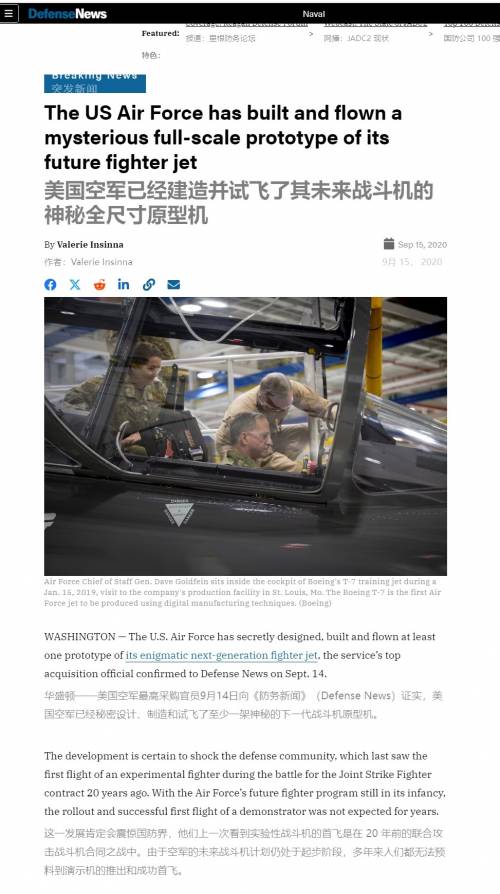 然后就是军事专家与军事媒体开始报道,有意无意的贬低中国六代机,甚至还将一个在2020年就曾报道过的被确认无确切消息来源的NGAD战斗机试飞的报道给重新排上了热搜,大量西方报道引用了这个说法称美军的五代机早在4年前就已经首飞!