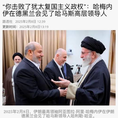 在以色列群情激愤的背景下,2月8日,在加沙之外流亡的几名哈马斯高级官员到伊朗与哈梅内伊见面。