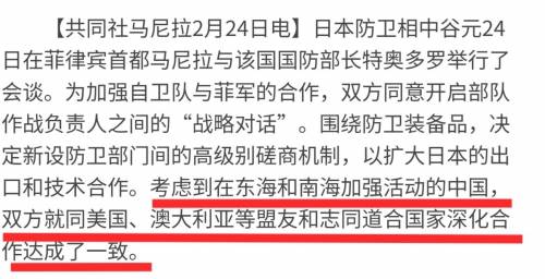 美菲日澳联手反华,并点名要共同“对抗单方面改变国际秩序的行为”,无疑就是对解放军此次远洋行动示威、施压,不许中国凭实力说话,更是在政治和外交层面替美国在亚太地区的布局“站台”。