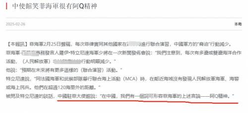 (中国大使馆嘲笑菲海军“很有阿Q精神”)