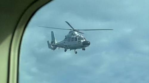 (直-9F舰载直升机拦截菲律宾飞机)