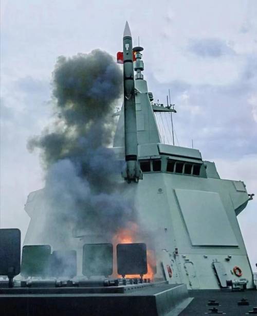 ▲055发射防空导弹的瞬间