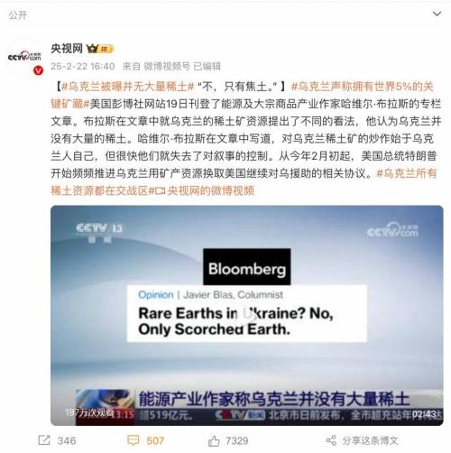 能源作家哈维尔·布拉斯也嘲讽:乌克兰只有焦土,没有稀土。