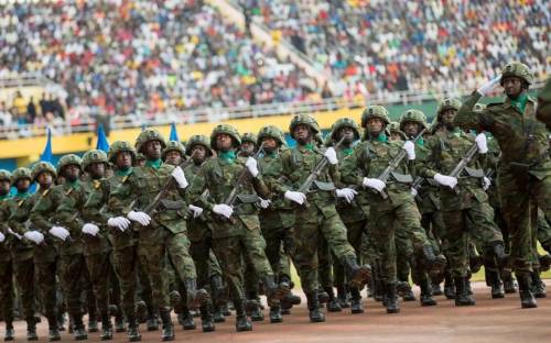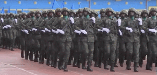 ▲卢旺达军队阅兵,走中式正步,喊中文口令