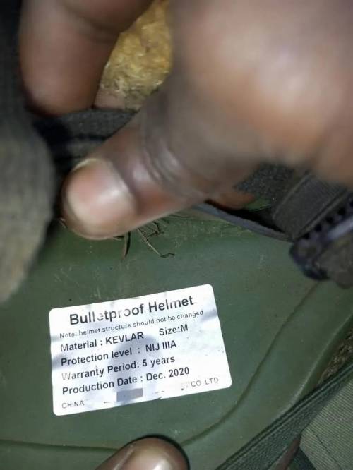▲刚果(金)缴获的M23武装头盔,标签上写着“中国制造”