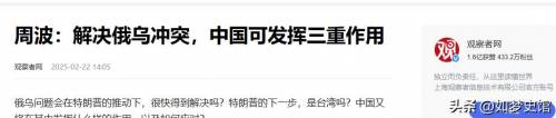 当然,周波提出此建议不是没有前提的,在周波看来,如果得到交战国的同意,中国和印度可以出兵乌克兰,相对于欧洲介入,中印则更为合适。