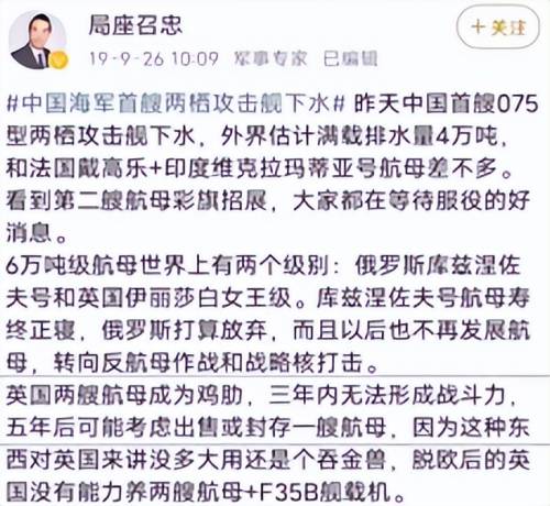 2019年,“局座”就曾给英国的“双航母”泼过冷水。