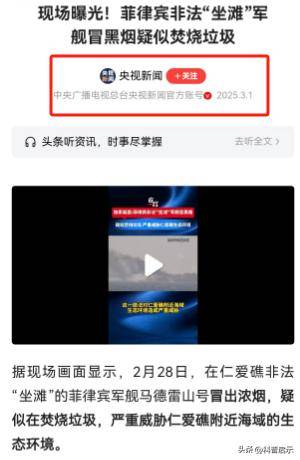 显然,菲律宾破登陆舰“葬身火海”的说法,是不实传闻,只是破船上人员在焚烧垃圾,央视新闻对此的定性是疑似在焚烧垃圾,严重威胁仁爱礁附近海域的生态环境。