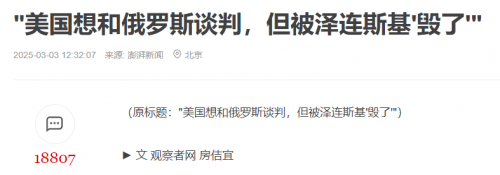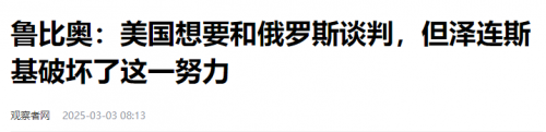 3月2日,美国国务卿鲁比奥在接受采访时也说了一段非常有道理的话:“我们正试图让俄罗斯总统普京坐到谈判桌前,”“这就是我们的目标,不要做任何扰乱它的事情。不幸的是,泽连斯基就是这么做的,他找到每一个机会,试图对每个议题都进行‘乌克兰式解释’。”
